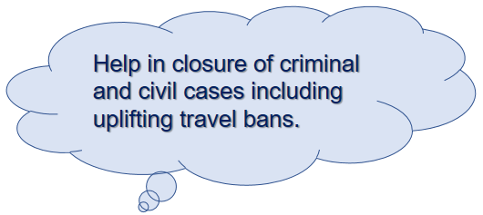 Additionally, we assist individuals who have left the UAE without paying off their debts, but now want to return. We negotiate with the banks, on their behalf and remove their travel ban so that they can come back to the UAE.